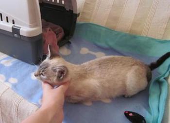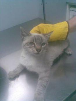 Mau wurde zusammen mit seinen Geschwistern und seiner Mama von der Straße gerettet. Auf die Katzen wurde geschossen. Mau hat dadurch ein Auge verloren. Auch seine Mama hat noch eine Schrotkugel im Körper, die in Kürze entfernt wird.