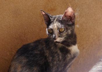 Pepita ist weiter sehr neugierig. Sie ist immer in der Nähe der Tierschützer, verfolgt alles, was sie machen. Sie streicht ihnen um die Beine, wenn sie allerdings dann die Hand nach ihr ausstrecken, flitzt sie weg, um wenige Sekunden später wieder zurückzukehren. Leider, leider haben die Tierschützer viel zu wenig Zeit sich mit den einzelnen Katzen wirklich zu beschäftigen, sonst wäre ihre Schüchternheit längst vergessen. Wenn es Nassfutter gibt, dann allerdings lässt sich Pepita von Menschen, die sie gut kennt, schon ausgiebiger streicheln, und das ist doch ein Fortschritt. Pepita ist ein Goldschatz, eine Katze, die alle mögen und das nicht nur weil sie so wunderschön ist mit ihren tollen Farben!