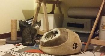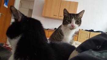 Bittor entspannt sich immer mehr bei seiner Pflegefamilie. Er hat sich sogar schon vorsichtig streicheln lassen, aber genießen kann er das noch nicht. Die anderen Katzen der Familie liebt er, da gibt es überhaupt keine Probleme.