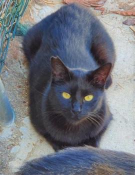 Milan hat sich super entwickelt. Er ist bildschön mit seinen im entsprechenden Licht intensiv gelb leuchtenden Augen - einer der schönsten schwarzen Kater der Finca. Und Milan hat sogar Riesenfortschritte gemacht: er lässt sich inzwischen, wenn es Nassfutter gibt, streicheln!! Und er mag das! Einer Vermittlung steht nun wirklich nichts mehr im Wege! Aber Milan wartet immer noch, inzwischen mehr als zwei Jahre. Aisun, die mit ihm zusammen auf die Finca kam, hatte da mehr Glück. Sie ist inzwischen reserviert und kann hoffentlich ganz bald nach Deutschland reisen.