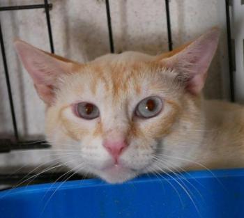 Kim ist ein pfiffiges Kerlchen. Er konnte sich fast zwei Jahre dem Einfangen entziehen. Jetzt aber ist er doch in die Falle gegangen. Er hat auf der Finca bereits seine Quarantänezeit hinter sich. Trotzdem gibt es nur Käfig-Fotos von ihm, weil er, seitdem er in die relative Freiheit einer Gruppe entlassen worden ist, sich nur versteckt, wenn die Tierschützer da sind. In einer Familie würde Kim also noch einiges an Geduld benötigen. Wir werden unterdessenden den hübschen Katermann beobachten und berichten, wenn sich Veränderungen ergeben.