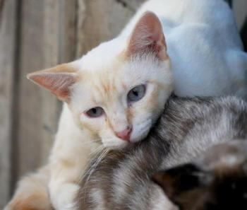 Endlich Fotos von Kim in (relativer) Freiheit. Der bildhübsche Katermann hat sich in der Gruppe sehr gut integriert. Auch hat er sich bereits eine kleine Freundin zugelegt: Cosette ist die Auserwählte. Geschmack hat er! Kim ist allerdings weiter sehr ängstlich. Wenn die Tierschützer kommen, verschwindet die Maus unter einer Palette, die im Auslauf seiner Gruppe steht - ein beliebtes Versteck für scheue Katzen. Um Fotos von ihm zu machen, muss man die Palette hochheben, dann flitzt Kim zusammen mit den anderen scheuen Katzen raus. Und diesmal hatte die Frau mit der Kamera sogar großes Glück: Kim blieb zusammen mit der etwas weniger scheuen Cosette auf der Fensterbank sitzen. Sie konnte sich dem Pärchen sogar bis auf einen Meter nähern - so waren die Fotos schnell gemacht. Vielleicht ist das ja auch ein Beweis dafür, dass der süße Kim langsam seine Scheu ablegt. Mal sehen.