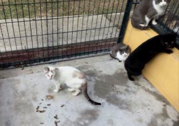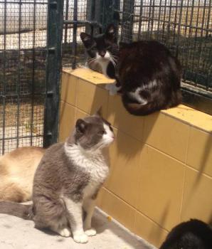 Oskar konnte inzwischen den Käfig verlassen. Er lebt jetzt in der großen Gruppe der Katzen auf der Finca. Dort kommt er super zurecht. Oskar ist ein sehr sozialer Kater und versteht sich super mit seinen neuen Kumpels. Was sich im Käfig andeutete, hat sich aber in der Gruppe leider nicht bewahrheitet. Oskar hadert offensichtlich doch noch sehr mit den Menschen. Ob er schlechte Erfahrungen gemacht hat oder in seinem bisherigen Leben wenig mit Menschen zu tun hatte, wissen wir leider nicht. Am Anfang war Oskar in der Gruppe nur versteckt, und auch jetzt, da er sich zeigt, lässt er sich leider nur aus sicheren Entfernung von den Menschen fotografieren. Wir versuchen bald bessere Fotos zu liefern.