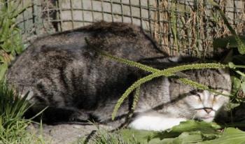Da Zebra immer wieder mal Magen-Darm-Probleme hat, vermutlich ist der Tierheimstress für die sensible Katze einfach zu viel, muss sie in den Käfig. Sobald sie da drin ist, lässt sie sich streicheln. Aber draußen ist das nicht möglich, dafür ist sie zu ängstlich. Wir sind uns sicher, dass sich das in einem eigenen Zuhause mit anderen Katzen geben wird.