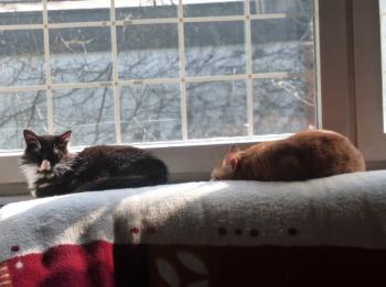 Es war ein Leichtes Lou von dem gefährlichen Ort wegzuholen. Noch nicht mal ein Transportkorb war nötig. Lou kam sofort auf den Arm und wollte dort gar nicht mehr runter. Offensichtlich hat die Maus keine schlechten Erfahrungen mit Menschen gemacht - und wurde trotzdem ausgesetzt. Sowas ist uns immer wieder unbegreiflich. Jetzt musste erstmal improvisiert werden. Lou bekam natürlich etwas zu fressen. Er hatte einen Riesenhunger. Dann wurde bei der Tierschützerin ein Käfig aufgebaut, Lou ging, ohne zu zögern hinein und begann sich sofort zu putzen. Besser dies als gar kein Zuhause, muss er sich wohl gedacht haben. Kurz darauf fielen ihm die Augen zu. Stundenlang hat er- nach all der Aufregung endlich in Sicherheit - tief und fest geschlafen.