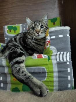 Pon schickt mal wieder Fotos. Auf denen sieht man, wie gut es ihm geht. Er kommt mit seiner Behinderung gut zu Recht. Zwar muss ihm die Blase ausgedrückt werden, damit er urinieren kann, Aber er hat sich daran gewöhnt und ist ein immer fröhlicher und so freundlicher Kater.