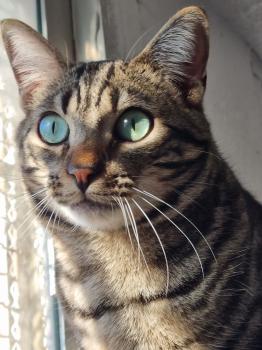 Er ist ein ruhiger, fröhlicher und geselliger Kater, der auch sehr gerne spielt.